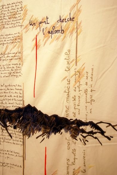 Aujourd’hui, il n’est plus question de décorer. Mais je veux tenir entre mes mains le fil et le tissu, les travailler, point après point, comme s’il était possible de saisir enfin le moment, quelque chose du temps, de retenir le fil de la pensée en brodant quelque mot, point après point, pour constater ensuite que le présent s’est écoulé et qu’il a pris son temps. »