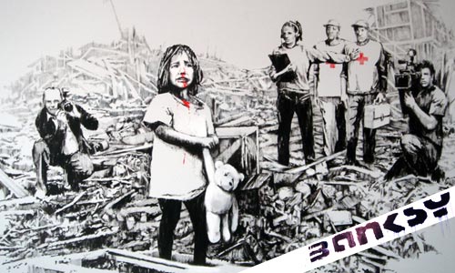 Le 20 août 2015, Banksy, accompagné d’une cinquantaine d’artistes, ouvre son parc d’attraction Dismaland(article du journal Le Monde du 24.08.2015) près de Bristol en Angleterre. Avec cette immense installation, il élargit son commentaire acide et lucide sur la société actuelle. Il y propose un « musée » à ciel ouvert décalé et sarcastique en poursuivant son objectif d’éveilleur de consciences.