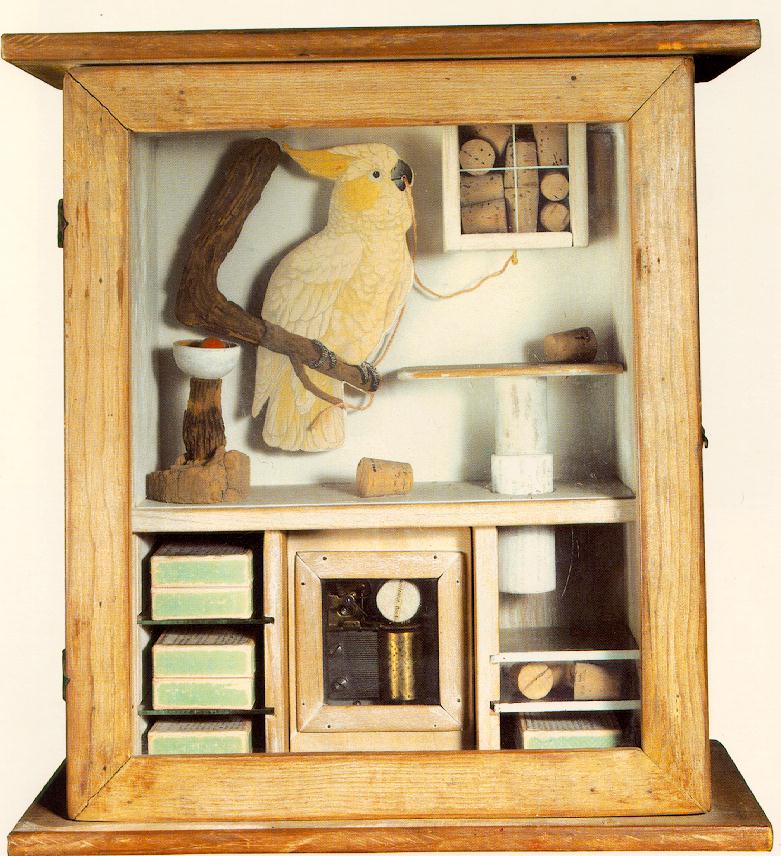 C’est en 1931 qu’il présente ses premiers collages au galeriste new yorkais Julien Levy. Celui-ci expose son travail quelques mois plus tard. La « Box » ci-dessous sera la première à être acquise par un musée.