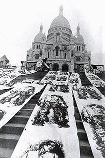 Pour un autre projet, en 1971, il opte pour la première fois pour la sérigraphie et tire des images grandeur nature des victimes de la Commune, les liant ainsi au drame de la guerre d’Algérie.  » L’anachronisme me plaît beaucoup, il peut être très signifiant. Et permet d’entrechoquer les événements de l’histoire contemporaine en utilisant les lieux, l’espace et le temps. «