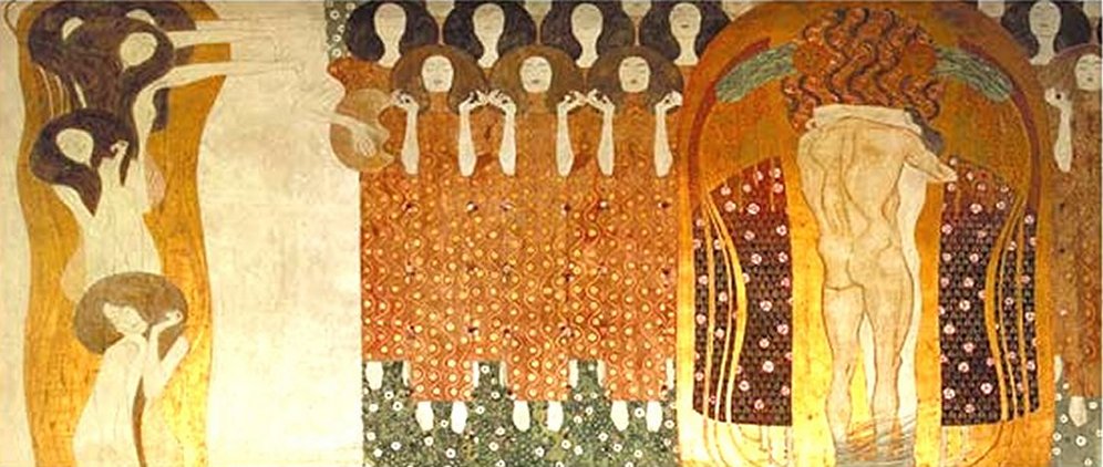 Inspiré par les estampes japonaises et le symbolisme, las de suivre le mouvement classique officiel, Klimt crée la Sécession viennoise avec J.Olbrich et J.Hoffmann, un groupe qui rompt avec le style académique. Un pendant à l’Art Nouveau français. Il lutte contre ce qu’il appelle l’obscurantisme artistique.