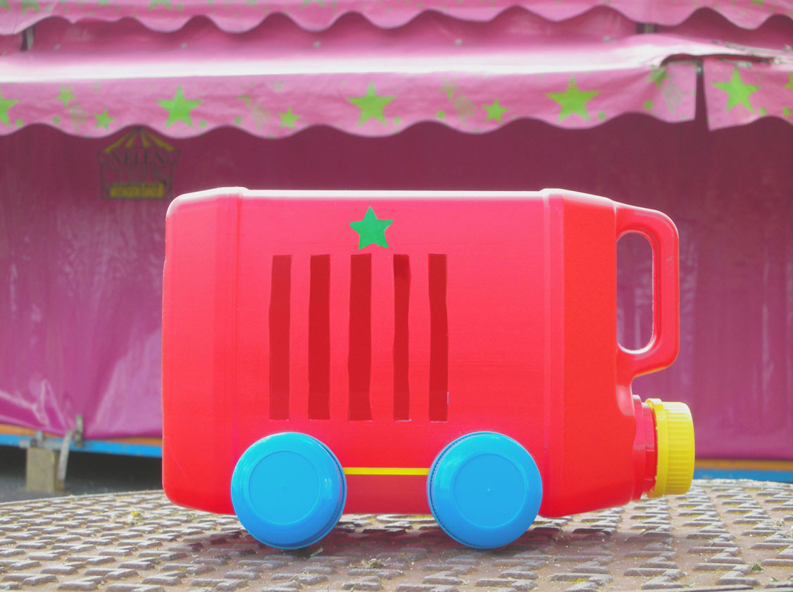 « Les Camions Bidons » avec les quels elle détourne les flacons ménagers par une intervention minimale pour en montrer une réalité différente. Ils sont ensuite photographiés dans un contexte réaliste.