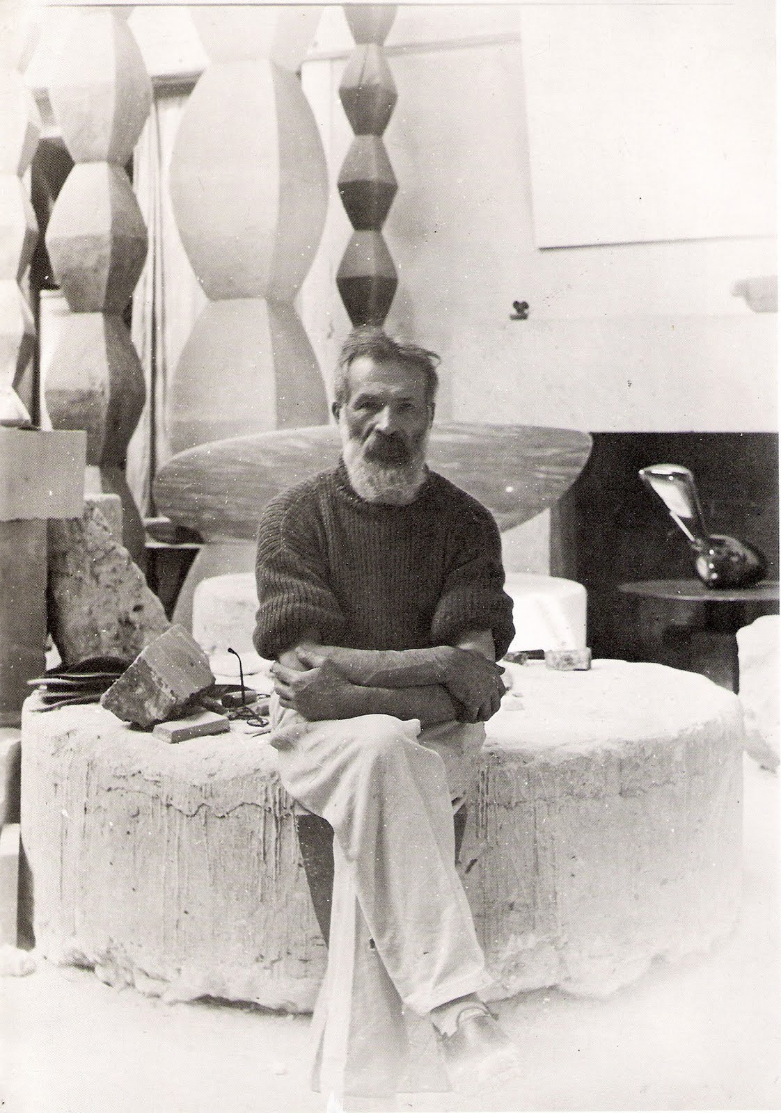 Il découvre que l’espace de l’atelier est l’endroit privilégié pour la perception de ses sculptures. Celui-ci deviendra une oeuvre d’art à part entière. Brancusi en remanie quotidiennement l’arrangement pour trouver une unité spatiale.