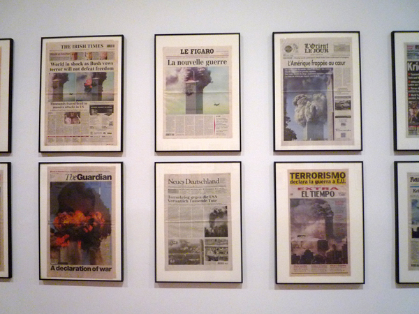 En 2008, il expose à l’International Center of Photography (Manhattan) en remplissant une pièce des unes de journaux internationaux datant du 12 septembre 2001.