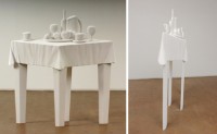 Il travaille sur deux formes différentes d’expression: Des formes d’objets compressés blancs vus en perspective…