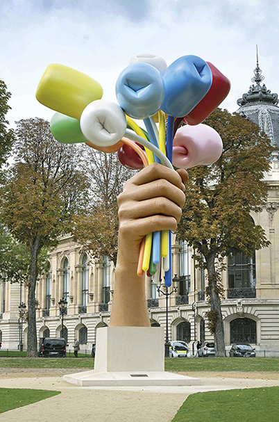 Son bouquet de tulipes, qui a outré pas mal de gens, a été offert à la ville de Paris après les attentats de 2015. À l’image de la statue de la Liberté, Bouquet of Tulips est financé par des donateurs privés américains et français, tous soucieux de pérenniser les liens d’amitié et de soutien entre les deux peuples. D’aucuns lui trouvent plutôt des airs de culipes… (cf Yves Michaud)