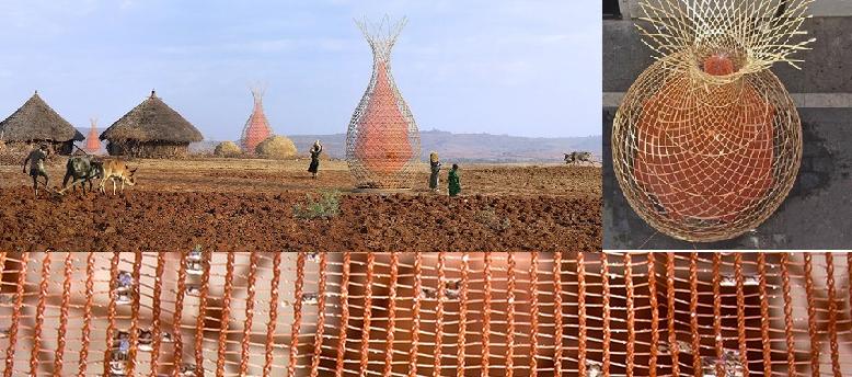 Pour aider au règlement des problèmes d’accès à l’eau potable, le studio AV met au point le projet de cette tour qui permet de capter l’humidité de l’air pour la transformer en eau. Celles-ci, de 9m. de haut, fabriquées en bambou permettraient un accès facile à une eau potable propre et en grande quantité (20 à 30 litres par jour). Au centre, un tissu est perforé sur tout son long et permet de récolter de l’eau par la simple différence de température entre ses fibres en nylon et l’air. De plus, les tours peuvent être facilement assemblées par les villageois. Le nom warka vient du figuier éthiopien qui abrite les réunions du village. Une première tour sera installée en 2015 au nord de l’Ethiopie. Le design, inspiré des maisons et de l’artisanat local, sera adapté aux régions choisies. Son prix d’environ 400 euros est nettement plus avantageux que celui du forage d’un puits (10000 euros!).