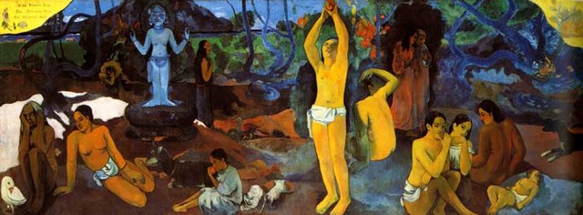 Il veut se « retremper dans la nature vierge pour y créer un art simple, débarrassé de l’influence de la civilisation ». Il cherche à révéler ce « malgré moi de sauvage »(écrit à sa femme) qui lui permettra de retrouver ses origines profondes, son primitivisme. Il y rencontre la jeune (13 ans!) Teha’a-Mana qui devient sa vahiné et son modèle.
