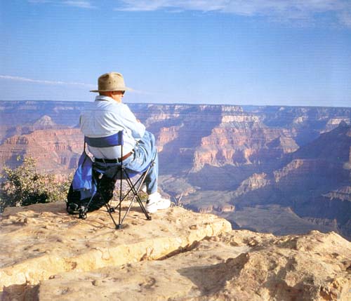 En 1982, puis en 1986, Hockney réalise des collages de photographies du Grand Canyon. En 1998, il réalise « A Bigger Grand Canyon », élaboré à partir de 60 tableaux (5 rangées de 12 toiles, plus de 7 mètres de long), dont chacun possède son propre point de fuite. « C’est le plus grand trou de la terre, il n’y a pas de centre, pas de perspective. J’ai d’abord pensé que la meilleure façon de restituer cette impression d’espace était de le photographier par morceaux et de faire un collage, parce que le grand angle déforme trop l’image. Mais finalement, il n’y a que la peinture qui pouvait restituer cela ». DH. A Closer grand Canyon en est une autre version.