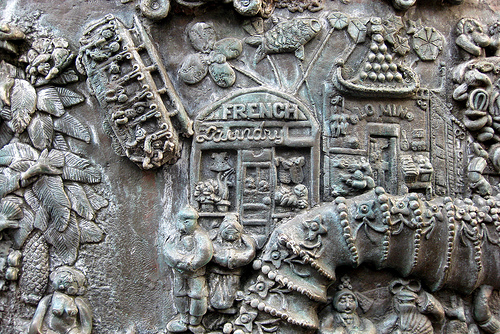 internment-memorial-213x300 Detail du » Japanese American Internment Memorial », bronze bas-relief devant the Federal Building à San Jose. (Photo by Terry Schmitt)