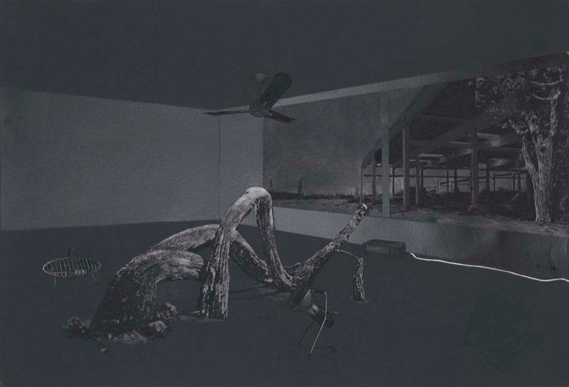 Tatiana TROUVÉ, Untitled, from the series « Remanence » 2008 / Crayon sur papier, mine de plomb, étain, plastique ( 82,5 x 119,5 cm). Courtesy Galerie Perrotin