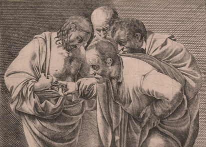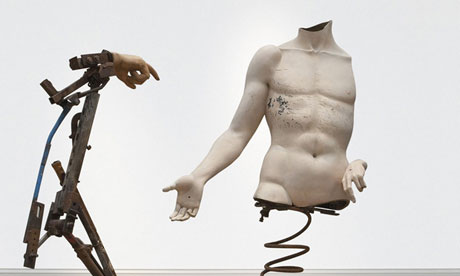 Agressif : avec l’oeuvre anonyme du XVIIe siècle d’après Le Caravage, qui montre trois apôtres touchant les plaies du Christ et qui fait écho à « celle de Michael Landy (1963), « Doubting Thomas » (2013), une sculpture mécanique actionnant une main, doigt pointé, vers un torse dénudé.
