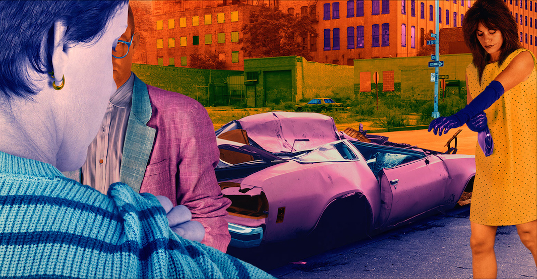 Ce qu’elle veut décoder de la culture américaine des années 1985-86, le média photographique, plus que la sculpture, lui permet de le transcrire. Ce sera la série « True Fiction ». A partir des photos en noir/blanc, elle imprime en monochrome puis découpe et colle les différentes parties en mêlant les teintes et rephotographie le résultat. Il en existe une seconde édition datant de 2004 (« True Fiction Two ») réalisée avec des moyens numériques.