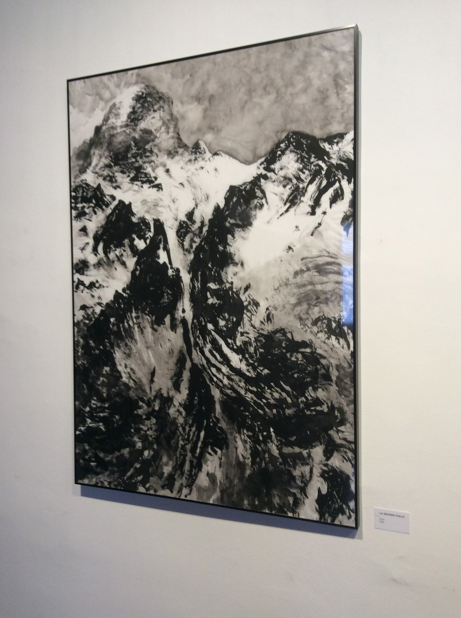 Un superbe papier oriental, un pinceau de même provenance, un support sec ou mouillé et le geste. Précis et libre. En est issu, l’immensité massive de la montagne, minérale, royale, imposante. Dans son abstraite réalité. « La mer à la verticale » dit-il. L’Eiger, l’inspiration de Leiter. Un travail vertigineux sur le vide. « Un rêve d’oiseau »…