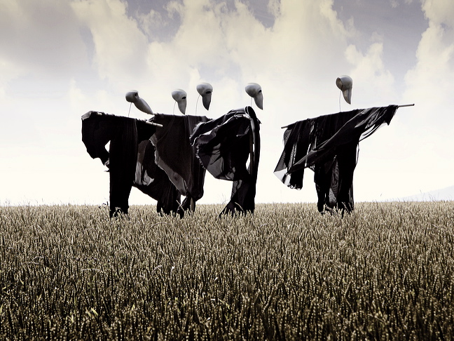 «Ce n’est pas tous les jours qu’on a une occasion pareille! C’est effectivement la concrétisation en 3D d’un dessin. Avec tout un travail sous-jacent, notamment dans l’implantation des épouvantails. C’est une pièce de théâtre minimaliste, dont les acteurs principaux seront le vent et les intempéries» Martial Leiter au sujet de ses épouvantails.