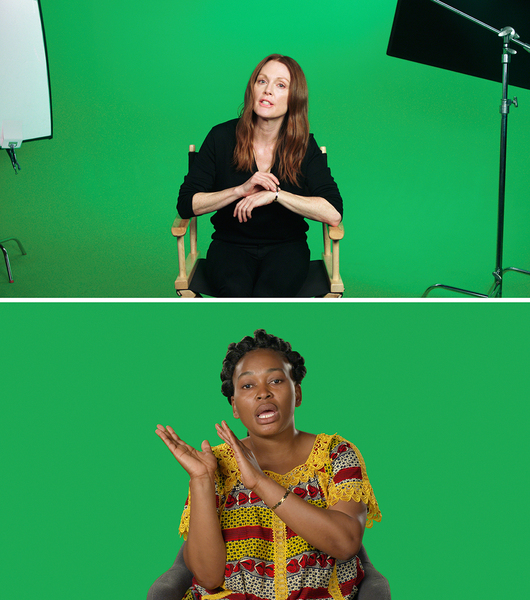 L’Afrique du Sud, avec la « Love Story »de Candice Breitz, se préoccupe de la migration forcée (comme le pavillon de la Tunisie qui distribue des passeports universels). Après le visionnement des trois vidéos bouleversantes de Mohau Modisakeng « Passage » (2017,voir un extrait ), Julianne Moore et Alec Baldwin disent les textes d’entretiens de six demandeurs d’asile, la salle suivante permet de voir ensuite les personnes sur des écrans de télévision et d’en écouter la version originale. Ce procédé incite le regardeur à distinguer une réalité différente de l’abondante documentation médiatique, à revoir son positionnement face à une personne humaine racontant son vécu véritable.
