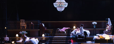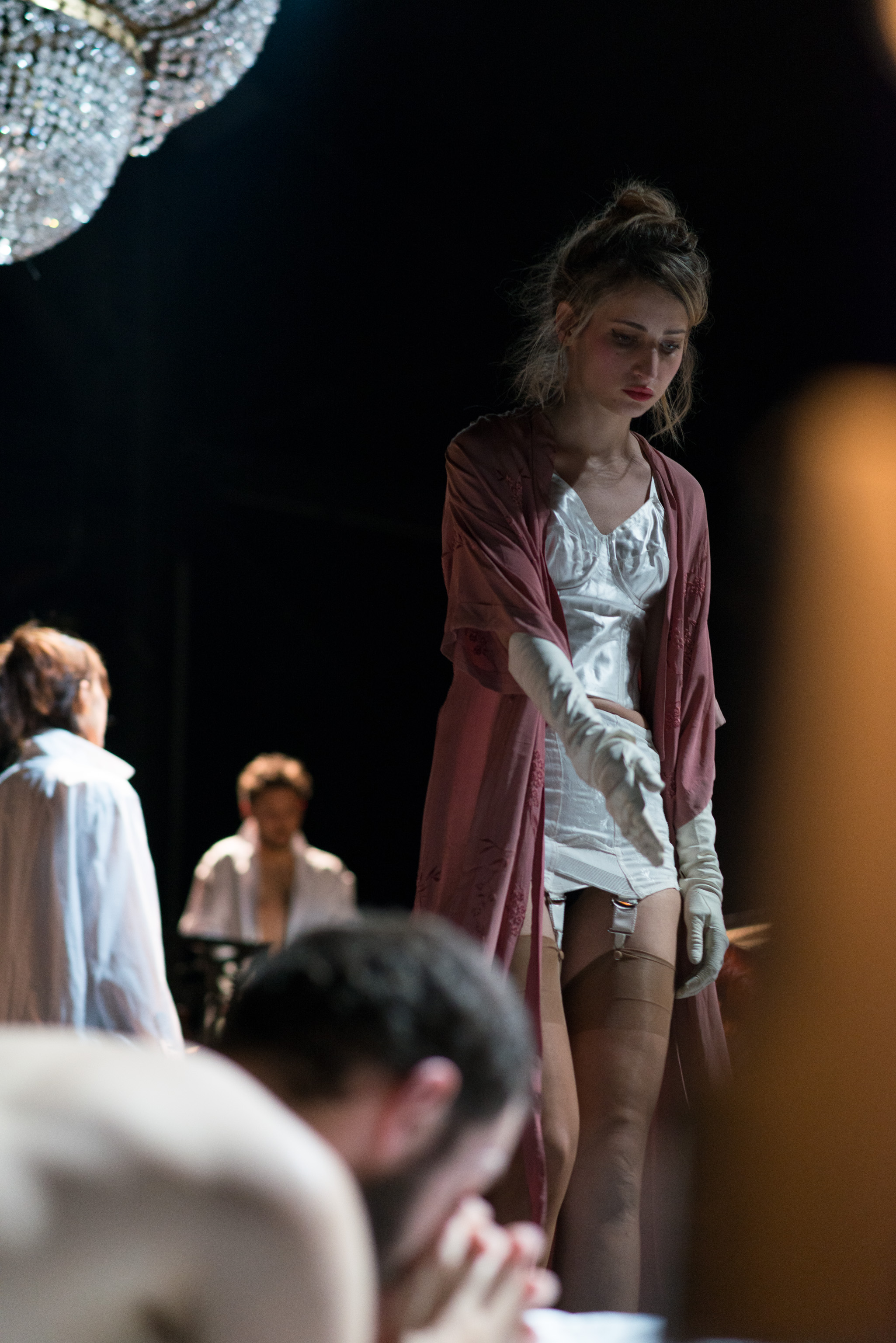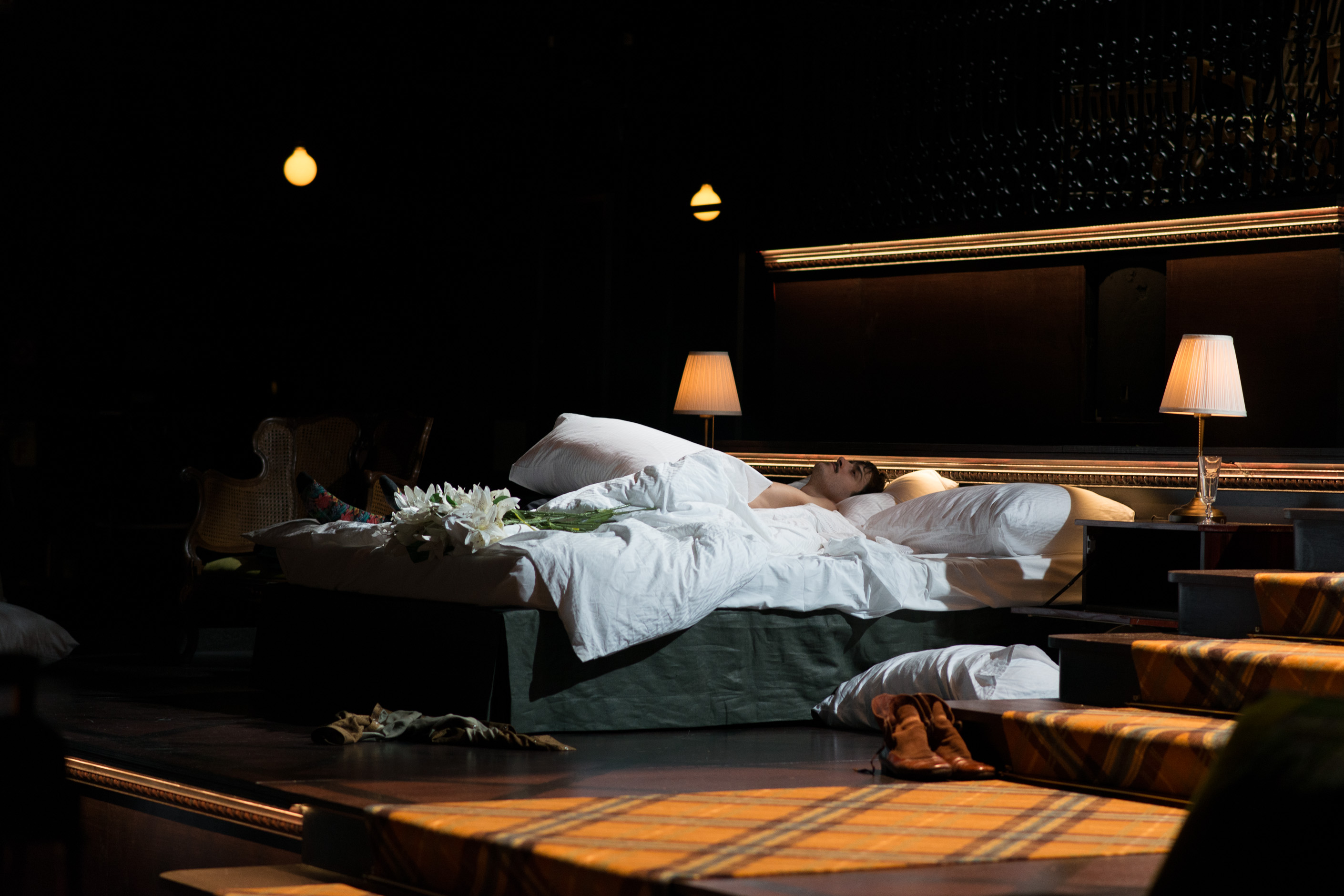 Le rendu scénographique de l’hôtel est bluffant: trois plate-formes divisées par un escalier et les chambres de part et d’autre. L’accueil des hôtes et leur installation comprend un rituel immuable et sécurisant. Ceux-ci, invariablement issus de la bourgeoisie cossue, arborent des tenues qui témoignent de leur époque, entre XIXe et XXIe siècle.