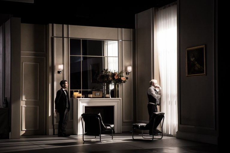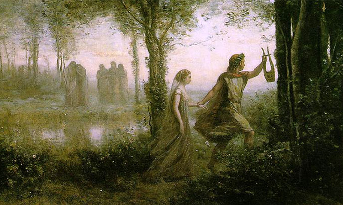 Les sons et l’odeur sont ceux d’un sous-bois, d’une campagne idyllique. Le rideau se lève sur un élégant salon bourgeois. Une longue table y est dressée pour un repas de fête. De hautes portes-fenêtres laissent filtrer la lumière du soleil au travers des voilages. Sur la droite, un coin cheminée au-dessus duquel est accroché un large miroir, à gauche un piano droit. Le tableau est juste au-dessus. C’est un Corot, «Orphée et Eurydice». Un gros plan sur cette image dinitie la face filmée de ce drame familial.