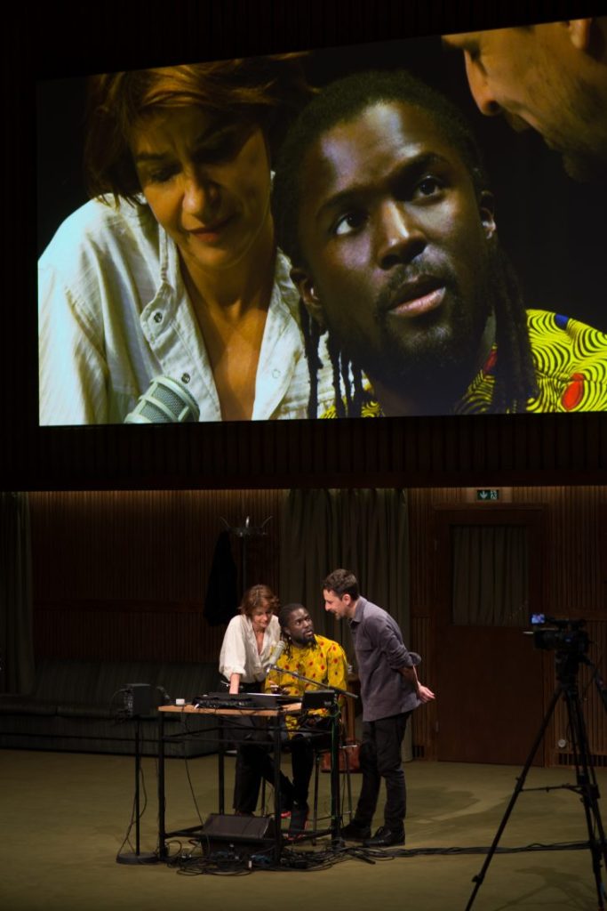 La comédienne interrompt le flux et demande une pause. La discussion avec le réalisateur porte sur le complot, le monopole. Les Murdoch et Bolloré, êtres maléfiques ou produits d’un système? Les choix du réalisateur provoquent une discussion. Le technicien du studio, français d’origine africaine, commente lui aussi en regard de ses propres références culturelles. L’occasion pour lui d’interpréter un rap vivifiant intitulé «Batard du terroir».