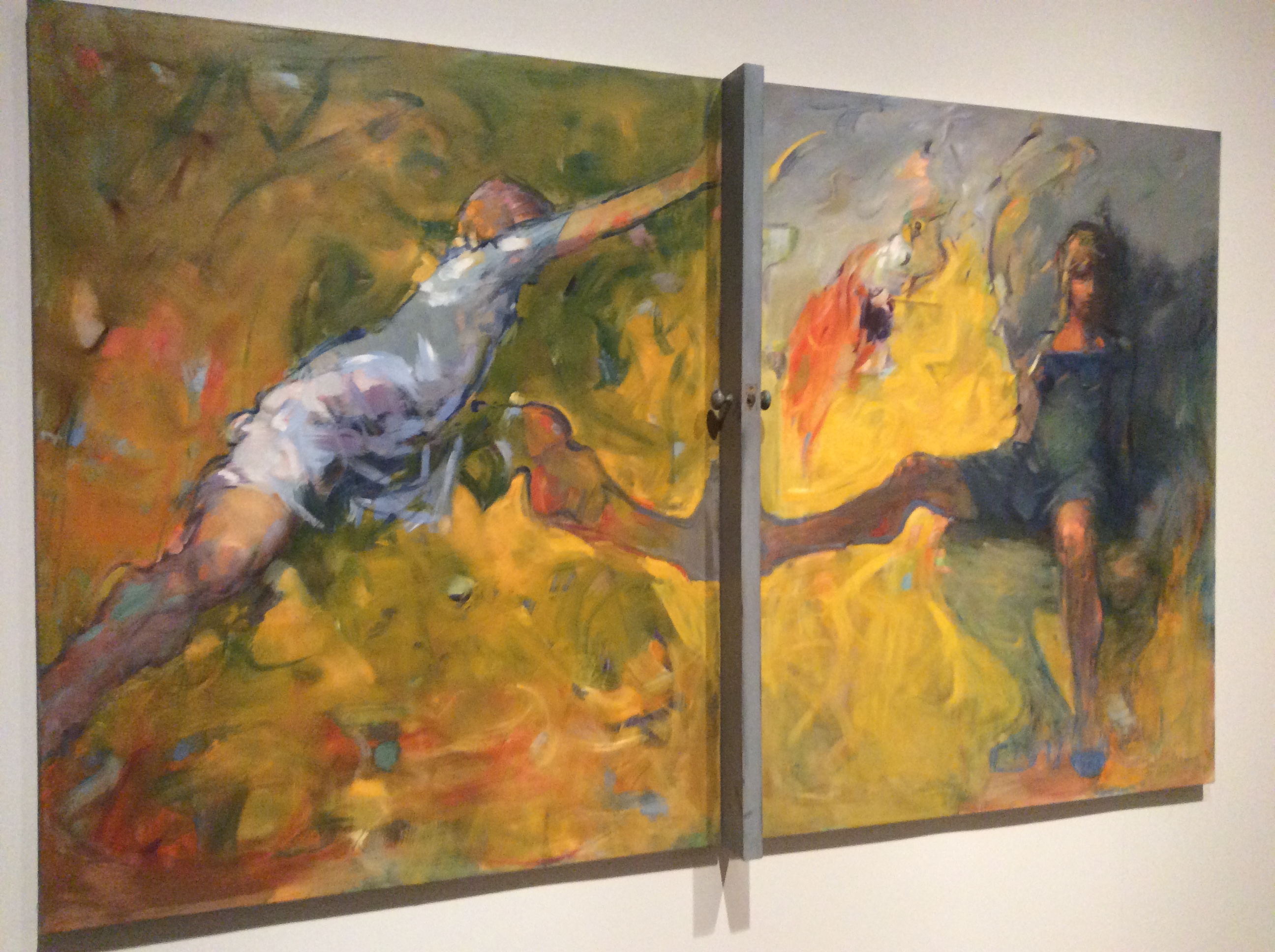 En 1984, elle inclut même un véritable morceau de porte divisant son tableau. Une jeune fille cherchant à l’ouvrir et l’autre la bloquant. Ou chacune résistant pour la garder fermée?