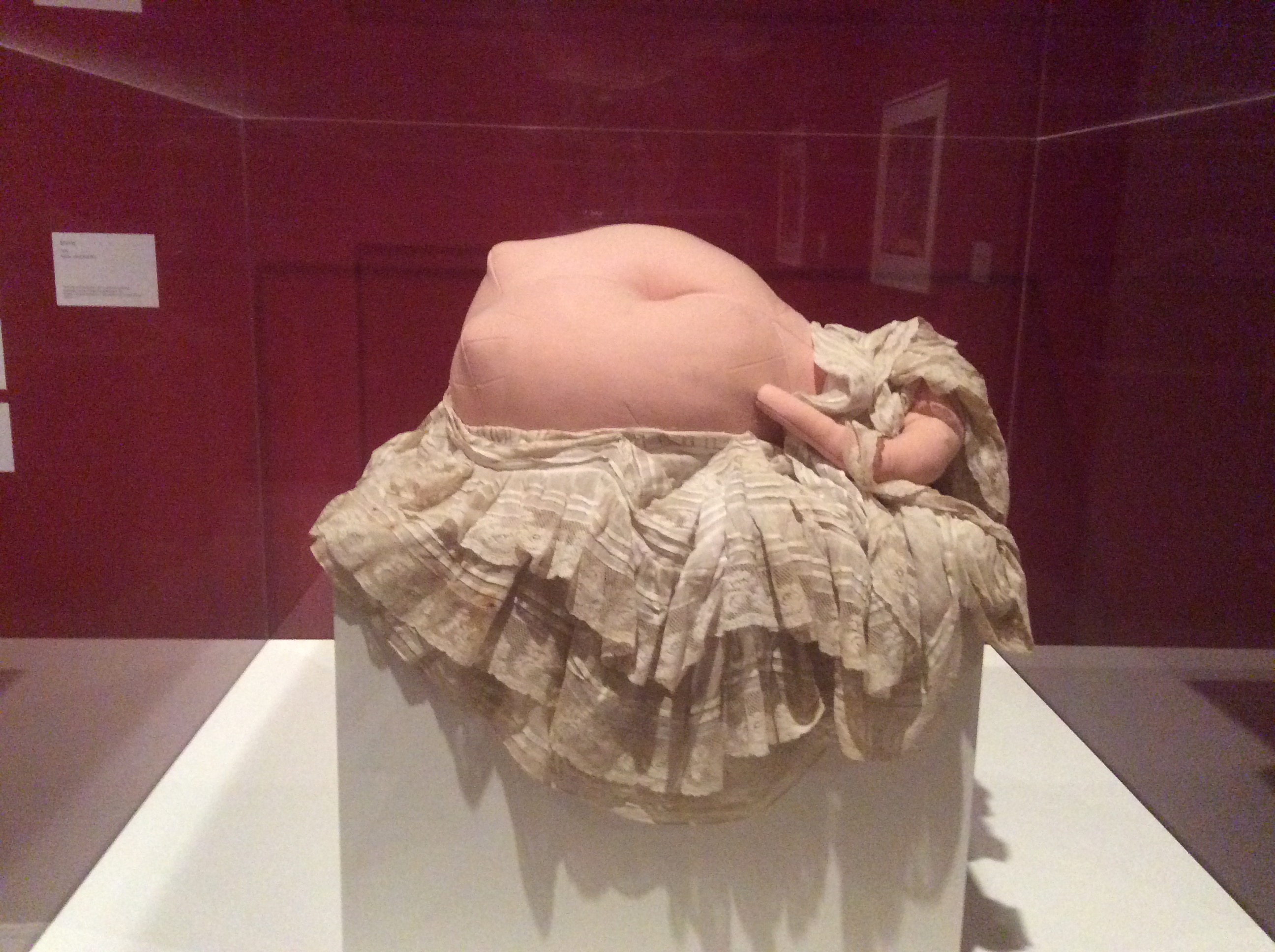« Chambre 202, Hôtel du Pavot » est une installation. Cette chambre fait référence à une comptine et à un drame ayant eu lieu à Chicago. La fleur renvoie à l’opium et aux rêves, ou plutôt aux cauchemars… des fragments de corps semblent jaillir du papier peint et des formes sensuelles et morcelées meublent cette sombre alcôve. Dorothea se met à la machine à coudre au milieu des années soixante et crée ces sculptures molles en tissu. Non sans humour aussi!