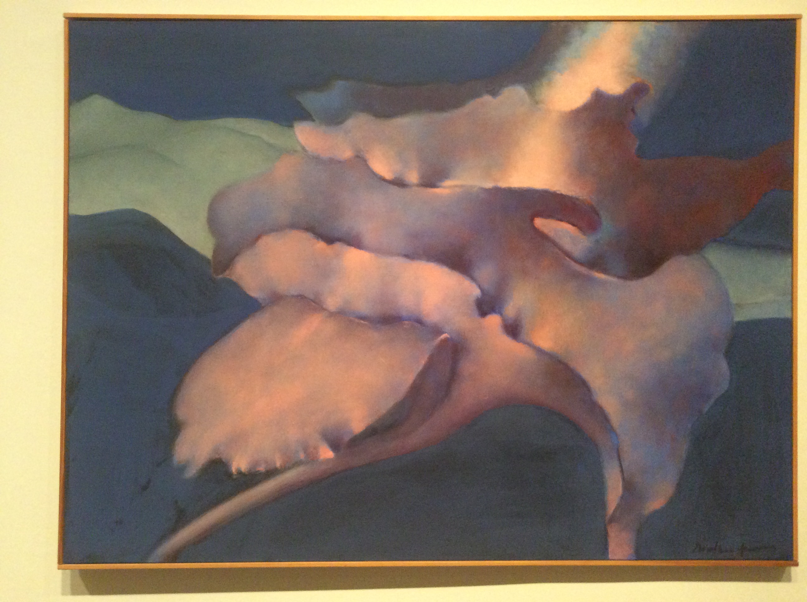Au milieu des années 50, les toiles de Dorothea Tanning deviennent plus abstraites. Son travail « éclate », elle expérimente un langage différent, personnel. C’est le quatrième chapitre de l’exposition. Elle n’abandonne pas la figure humaine, mais l’utilise avec plus de liberté, faisant apparaître des fragments de corps amalgamés. Un kaléidoscope d’images suggérées que l’on découvre peu à peu en observant le tableau.