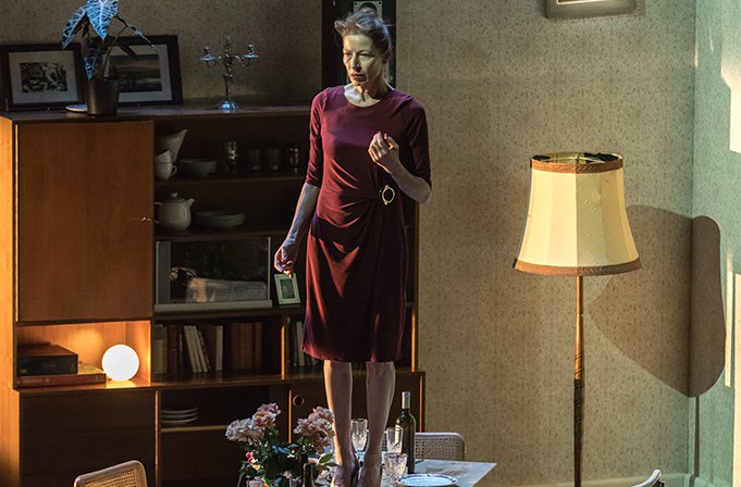 Le texte donc. Je comprends qu’Alexandre est mort, qu’il a trahi chacune des trois femmes, et l’homme aussi, pourtant son ami. Au contraire du metteur en scène, grand connaisseur de Platonov, je suis ignorante de son histoire, celle qui a eu lieu juste avant, et dont cette pièce est la conséquence. Un homme est mort, un crime a eu lieu. Ce n’est pas ce qui importe. Ce qui importe ici, ce sont les éclaboussures qui ont rejailli sur les autres, ces blessures encore à vif. Chacun des personnages ressasse son propre vécu, exprime intérieurement ses griefs et son amertume. Seulement, le texte me parait vite ennuyeux. Comme une longue plainte assaisonnée des violons dramatiques du cinéma hitchcockien.
