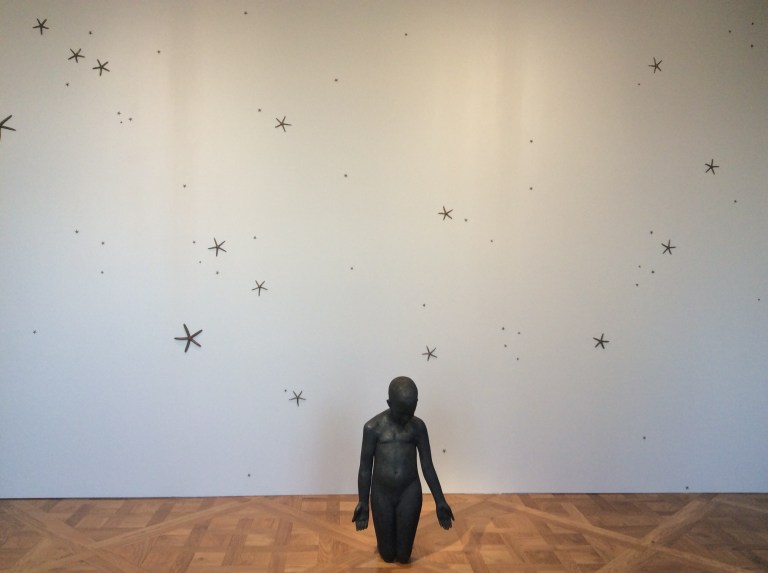 Les paysages cosmiques apparaissent comme de récentes préoccupations de Kiki Smith. Débutant par l’intérieur du corps humain, elle poursuit vers l’infiniment grand. De la réalité intérieure vers la réalité extérieure, celle qui englobe l’Humanité, mais aussi la spiritualité.