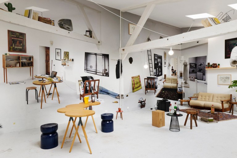 « Je pense aux espaces que je crée comme des espaces de travail ou des abris. J’aime l’idée que les espaces entre les calques de l’image puissent être des interstices où vous pourriez vous cacher ou disparaître. J’aime aussi le fait que ces couches créent une sorte de microarchitecture. »E.L.