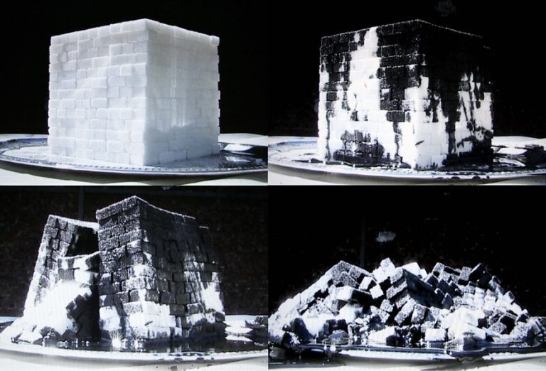 Image d’en-tête: Arman, « Fragmentation », 1999, (guitares découpées remontées sur panneau de bois)