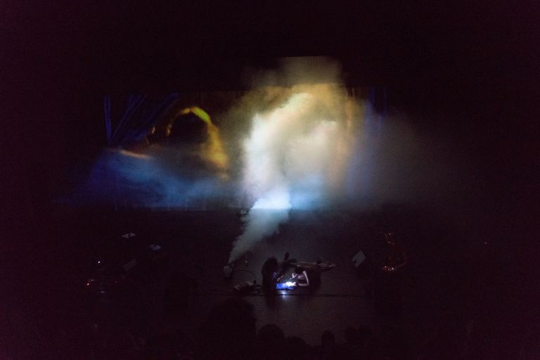 Les trois acteur.rice.s infiltrent peu à peu le déroulement de la projection jusqu’à en devenir, non plus uniquement des voix, mais les protagonistes physiquement impliqués. Un sinistre brouillard se déploie lentement au-dessus du public. Entre un étal de boucher (ou table d’autopsie?) et une transe punk rock, ce conte maléfique en Technicolor se termine par un incroyable mini-concert final trash, offert par les interprètes en direct… qui laisse pantois!