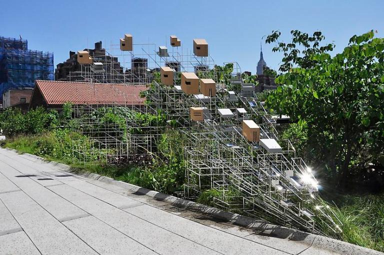 A New York, l’une de ses création est une œuvre fonctionnelle qui suit la trajectoire de la High Line (chemin de promenade surélevé). Visuellement, elle part du point de fuite de la High Line, comme un dessin en perspective et en trois dimensions. «Still Life with Landscape (Model for a Habitat)», 2011, est fabriquée en acier inoxydable, en bois, en peinture et en béton. La sculpture comporte des éléments qui fournissent des abris, de la nourriture et de l’eau pour les oiseaux, les papillons et les insectes.