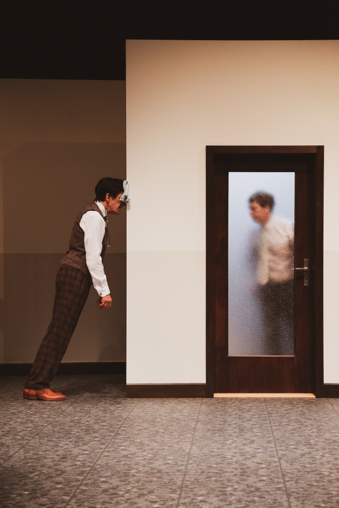Lors de ces explorations du langage et autres citations d’auteurs et autrices proches de l’OuLiPo, l’humour est omniprésent, tout comme la poésie: tant de contrastes entre poèmes et assonances, musiques et textes, dialogues et interpellations, postures et conventions sociales… et ce qui est déversé par la boîte aux lettres dans le but de formater les esprits! C’est le carcan du monde extérieur qui serre aux entournures, pas le gilet. Un humour caustique en diable sous son air innocent où les portes claquent sur un morceau de Bach et où la poésie résonne d’onomatopées.