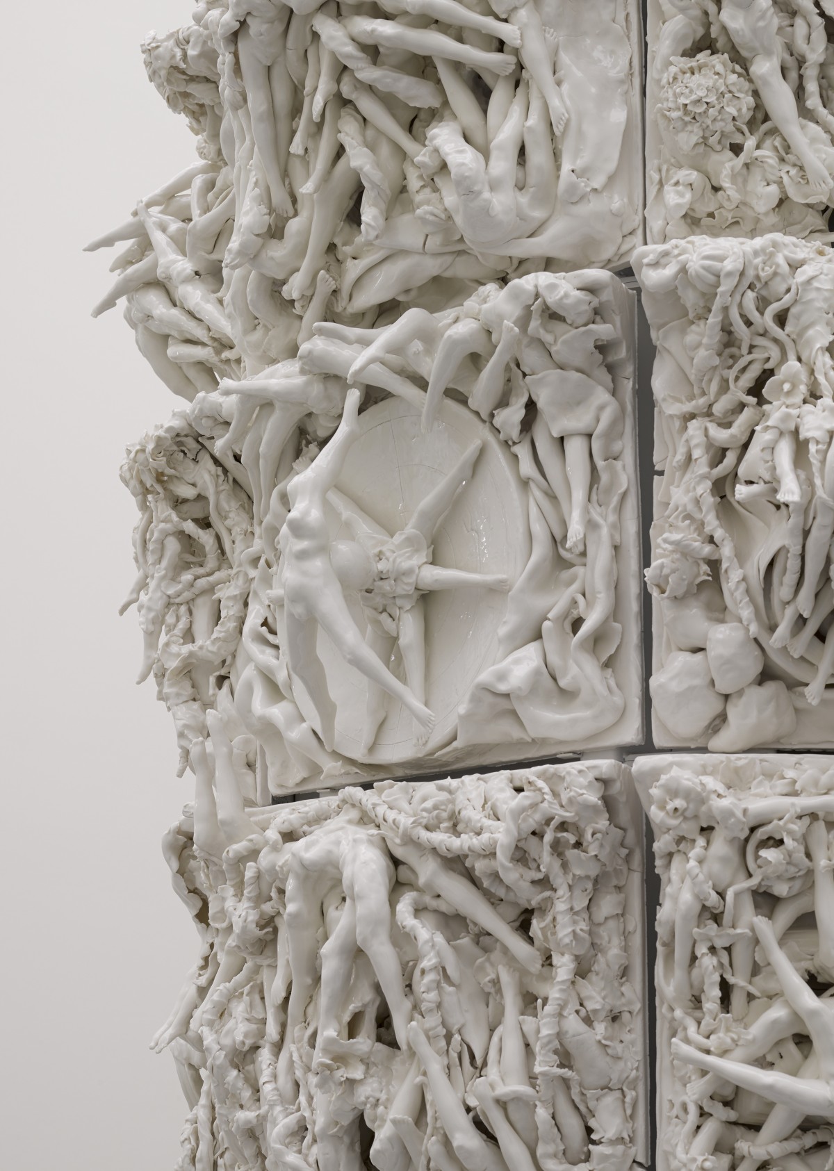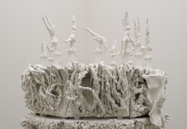 Rachel Kneebone est diplômée du Royal College of Art. Elle vit et travaille à Londres. Ses sculptures de porcelaine blanche ressemblent à des chorégraphies figées dans le temps. Un chaos de membres entrelacés sans aucune trace de visages, seulement des jambes et des torses tronqués. Entre l’os et la chair, la vie et la mort.