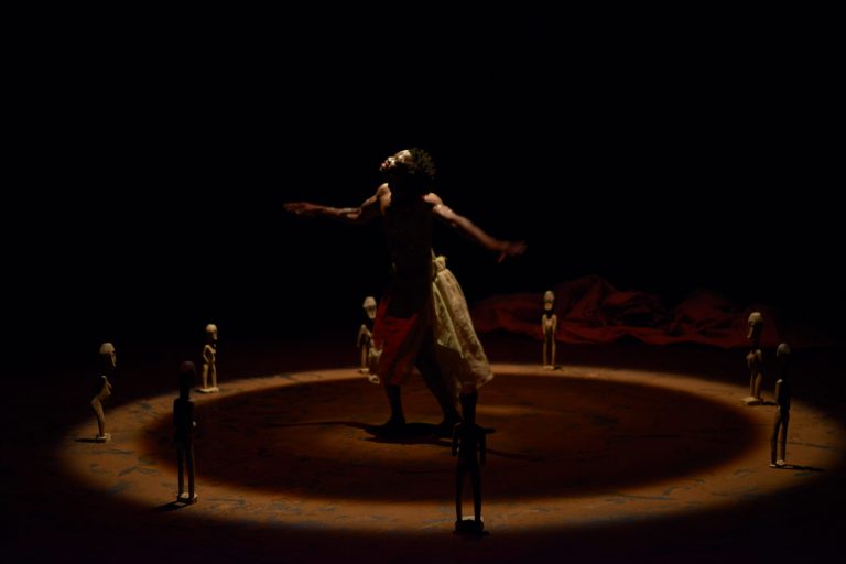 Nos mouvements, rythmes, souffles et voix portent les traces intangibles et mystérieuses d’où nous venons. Aussi pour le danseur Faustin Linyekula, le raconteur d’histoires du Congo blessé, son corps est-il la seule archive sensible des passés de son pays. Pour ce nouveau spectacle, il parcourt vingt ans de création, attentif à ce qui n’est pas là : les femmes, absentes des mémoires comme des récits de son clan. Il les convoque sous forme de statues de bois réalisées par Gbaga, sculpteur Lengola.