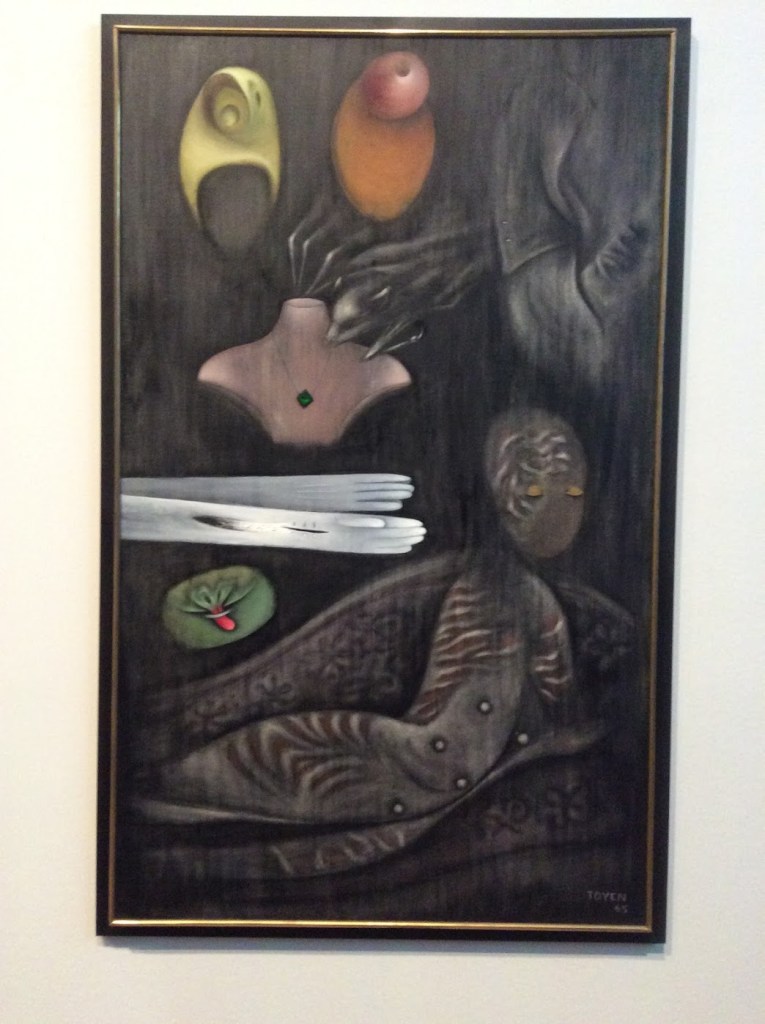 Prendre l’air et marcher jusqu’à la Tate Modern, avec un peu de chance, sous le soleil. Ce fut le cas. « Surrealism Beyond Boarders » nous rappelle que le surréalisme, loin de n’être qu’un mouvement des arts plastiques, est un état d’esprit. Il a contribué à permettre aux artistes du monde entier à défier les autorités et à imaginer de nouveaux univers. nous connaissons, vers 1920, ses années parisiennes, mais le mouvement a réuni des artistes du monde entier et duré jusque dans les années 70 ailleurs (Buenos Aires, Le Caire, Lisbonne, Mexico, Prague, Séoul et Tokyo).