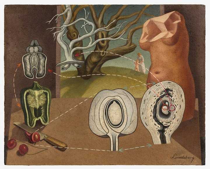 Le film expérimental surréaliste At Land de l’ukrainienne Maya Deren, Helen Lundeberg qui trouve des analogies entre plantes et animaux, le cadavre exquis « longue distance » initié par Ted Joans dès 1976 qui mesure presque 10 mètres,