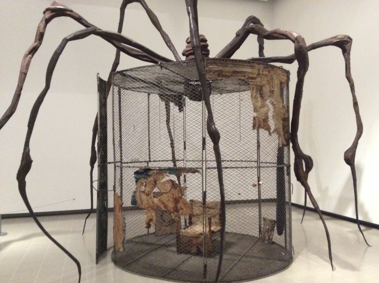L’araignée, motif récurrent de Louise bourgeois entre 1990 et 2000, protège cette cellule d’acier, sa toile, en la chevauchant. Certains objets personnels, comme une bouteille du parfum Shalimar, sont à l’intérieur et créent une atmosphère nostalgique. Trois oeufs de verre sont enveloppés sous l’abdomen de l’araignée. Celle-ci représente sa propre mère, mais aussi elle-même et sa créativité. Elle évoque aussi ses proies et son aspect prédateur. Malgré son apparence monstrueuse, c’est une réparatrice. Si sa toile est endommagée, elle la restaure.