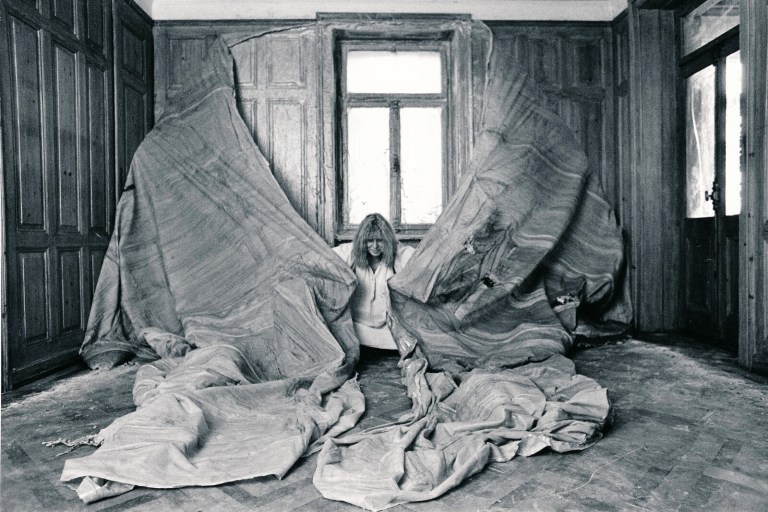 Heidi Bucher (1926-1993) travaille sur la contrainte et la libération. C’est à une sorte de dépeçage de l’espace qu’elle s’attaque. Et lorsque l’on assiste à la vidéo qui la montre en train de tirer sur le latex dont elle a enduit une pièce, on assiste à l’effort monstrueux qu’elle doit fournir.