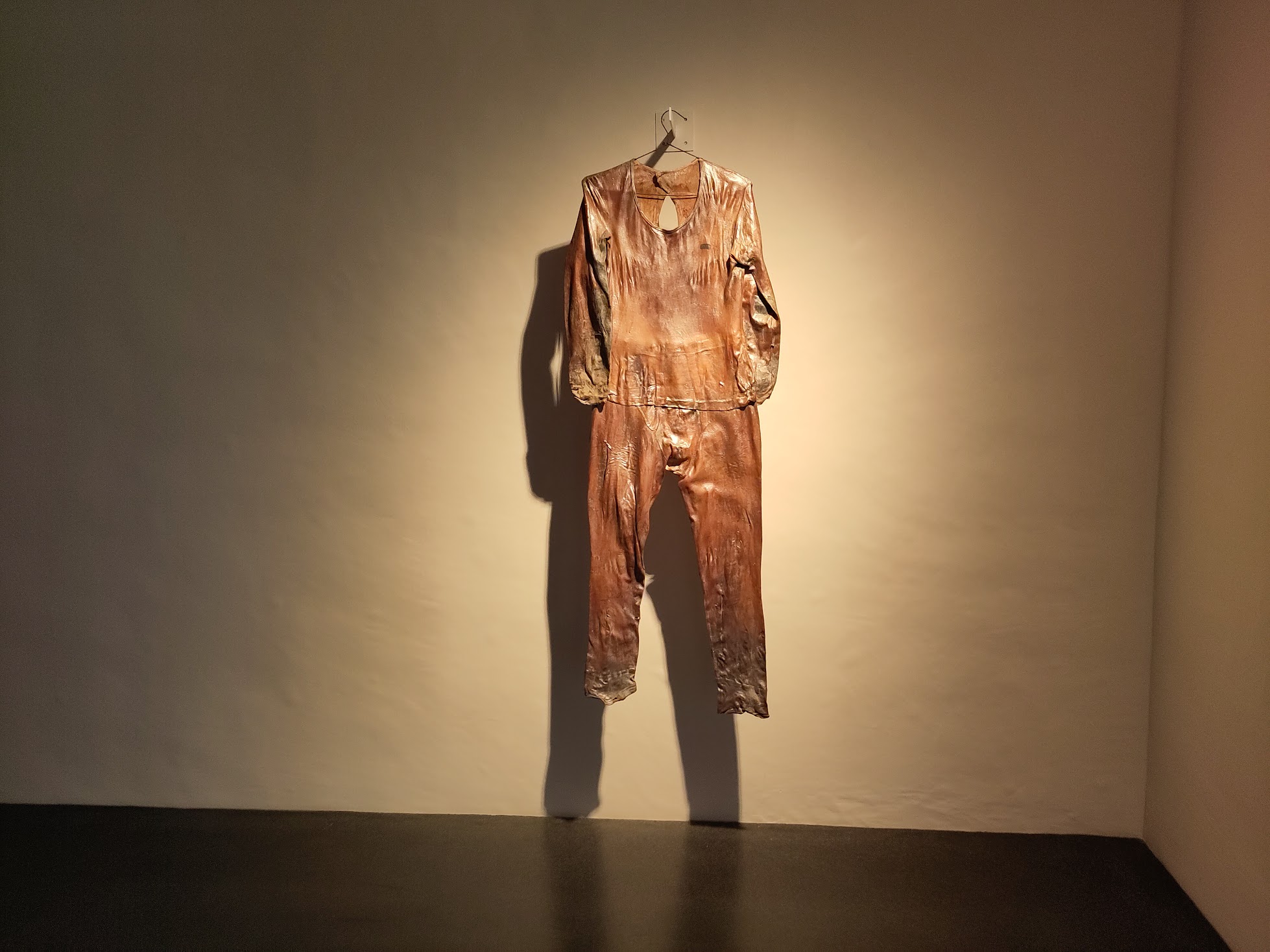 A son retour en Suisse, elle expérimente sa technique : enduire des surfaces avec du latex nacré pour leur donner une nouvelle peau qu’elle écorche ensuite. Tout cela à mains nues. Choisissant ses « écorchements » avec un soin politique, elle travaille sur les chambres patriarcales (celle de son père, celle d’un hôpital psychiatrique pour femmes « hystériques »). Elle recouvre aussi de latex des vêtements et des corps féminins, travail qui m’avait interpelé à la biennale de Venise 2017.