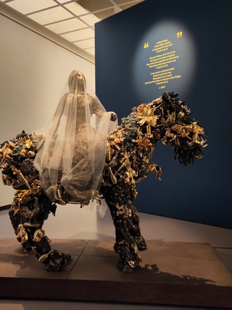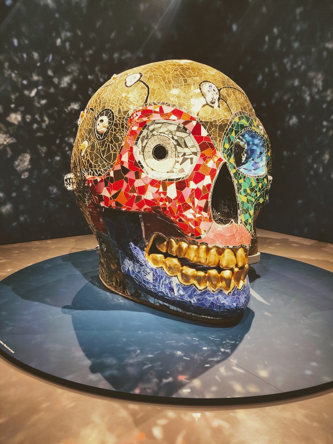 Les crânes sont des motifs récurrents de son travail. Celui, monumental , exposé ici est une chambre de méditation à l’intérieur de laquelle on peut entrer, un genre que l’on peut voir aussi chez Mai-Thu Perret (Little Planetary Harmony en forme de théière) ou le 8 de Sylvie Fleury (en forme de capsule spatiale).