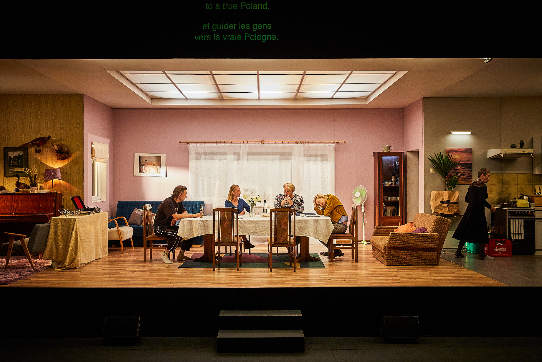 Lors de la deuxième partie, on réalise que cette troupe polonaise du TR Warszawa de Varsovie est exceptionnelle. Nous y rencontrons la mère de Maja, sa cousine, sa soeur et son mari. Les caractéristiques de chacun seront sujettes à digressions sociales, politiques ou religieuses. Des tensions anciennes s’installent, évoquant des antinomies et des discordances. Mais l’attitude de Maja se retrouve au centre de la controverse. Le tabou universel de l’enfant mort bloque les dialogues. Sa famille ne comprend pas l’espèce de distance qu’elle met entre son drame et son mode de vie. « Vous attendez de moi l’image d’un post qui fait pleurer sur Facebook! » s’écrie-t-elle. Incapables de la soutenir, imprégnés des normes sociales, iels voudraient qu’elle porte son deuil comme un étendard et en même temps qu’elle le surmonte. Mais Maja ne veut rien oublier, elle veut vivre son deuil à sa façon, elle persévère, elle a survécu, seulement accompagnée de sa douleur. Elle est une combattante bouleversante.