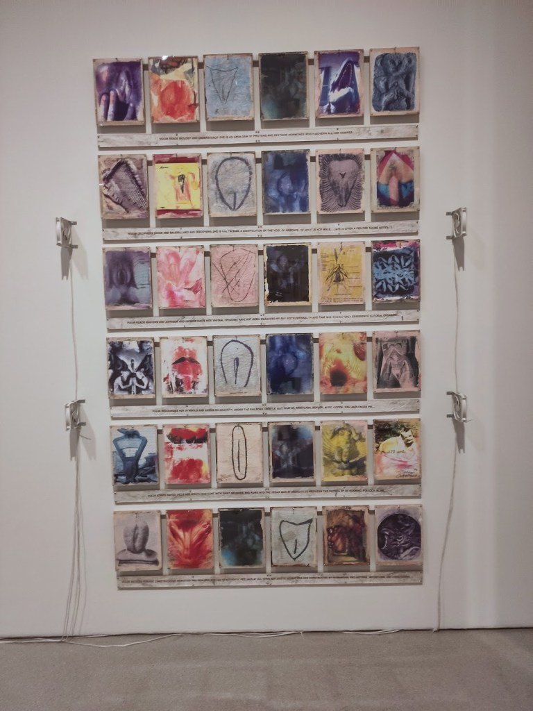 Les prises de positions des 70’s développent les consciences. Schneemann prend position contre les normes patriarcales, assumant son choix de ne pas procréer, sa priorité étant son art. Elle étudie les exclusions dont sont victimes les femmes dans tous les domaines, en particulier celui de l’art, ce qu’elle nomme « vulvic space« . Elle ouvre son discours à tous les corps marginaux et redéfinit son langage en utilisant des pronoms inclusifs ou neutres.