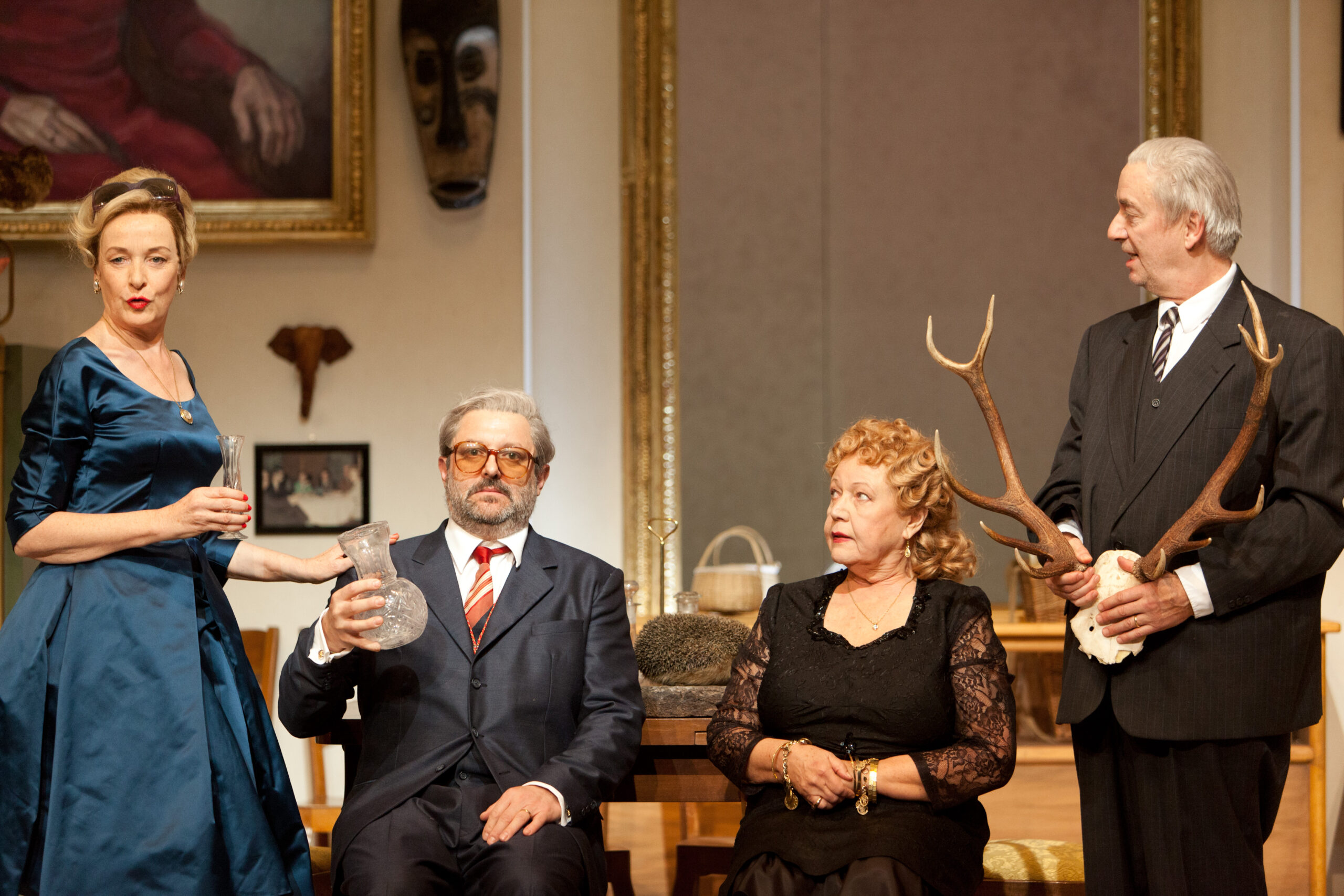 Les objets eux-mêmes ont un rôle: une chaise sans son assise s’avère aussi collante que du scotch, un poste de radio prend la parole, un crâne de cerf devient accessoire indispensable, un cordon électrique refuse de se laisser dompter. Et ce défilé d’animaux empaillés? Ne figurent-t-ils pas l’immobilisme figé dans lequel sont englués les protagonistes?