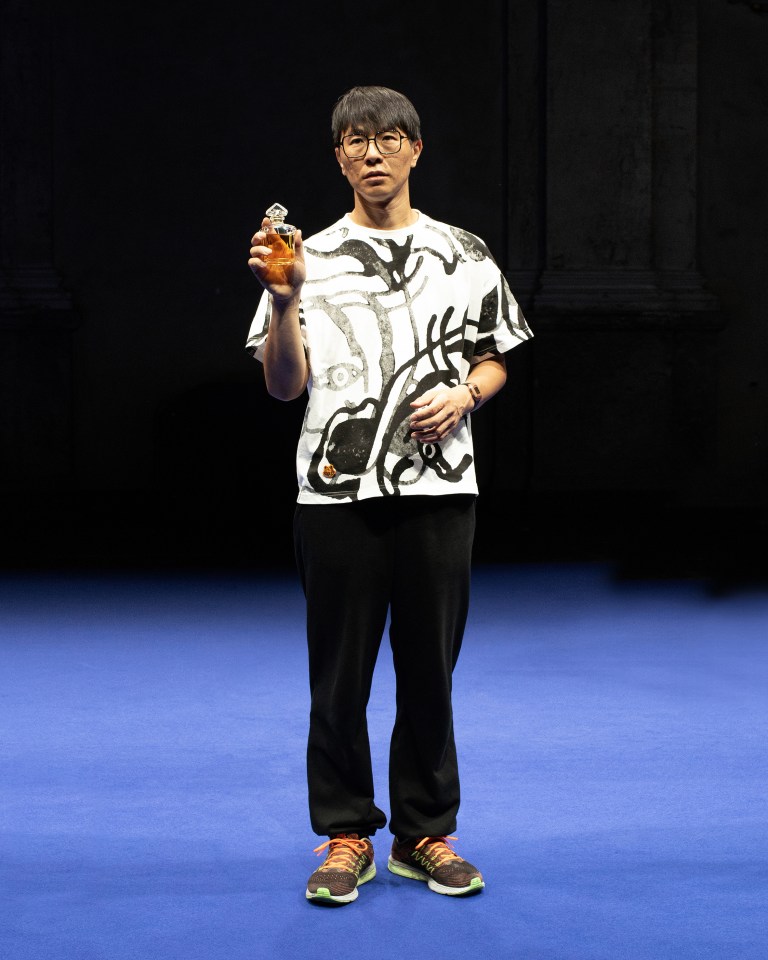 Entrecoupée de mouvements dansés entre théâtre Nô et tai-chi, la narration file tout en harmonie. Dans cette mise en scène dépouillée, renforcée par des projections vidéo et une lumière astucieuse, Michikazu le paisible est un conteur passionnant et attachant. Cette boucle de la grande Histoire, éclairée par des personnages charismatiques, formule certains préjugés fumeux à la lumière d’autres histoires, plus spécifiques. L’étymologie latine du mot parfum, per fumum, se retranscrit d’ailleurs littéralement « par la fumée ».