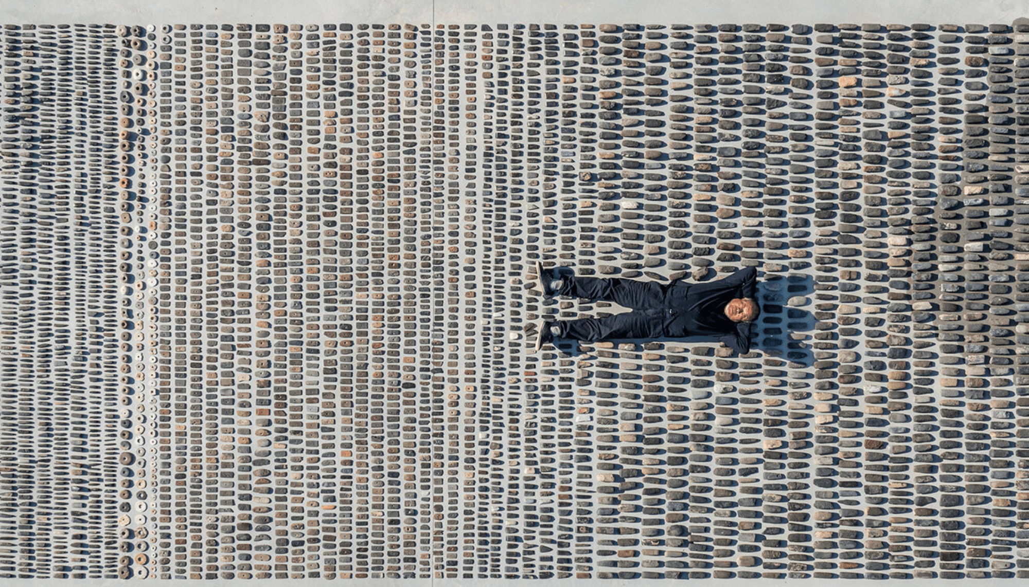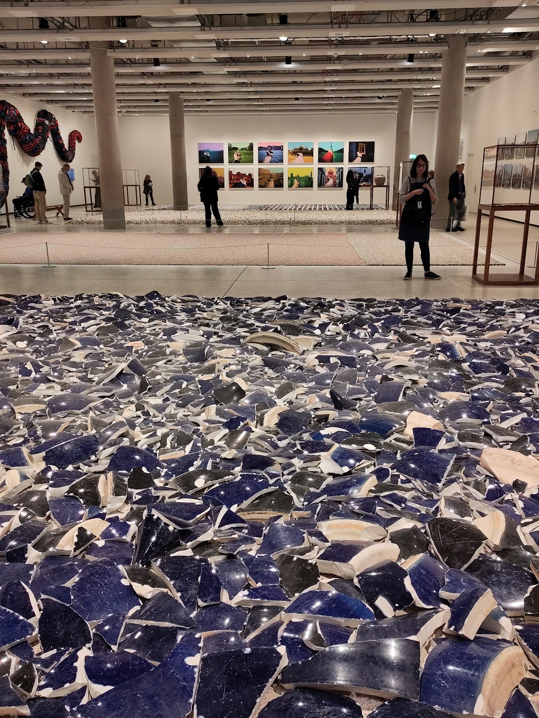 L’exposition occupe une seule grande salle où sont étalés cinq champs rectangulaires. L’un est constitué de 4 000 outils en pierre de la période néolithique, l’autre de 250 000 becs cassés de théières jugées imparfaites dans les manufactures de porcelaine, il y a environ un millénaire. Viennent ensuite 200 000 boules de porcelaine artisanales de la même époque, utilisées comme munitions dans l’artillerie de l’époque. Un rectangle est composé de gros éclats de porcelaine émaillée bleue, les restes de ses propres sculptures qui ont été détruites lorsque l’État chinois a démoli son studio de Pékin en 2018. Le dernier champ est fait de briques Lego, envoyées par des membres du public lorsque la société Lego a brièvement cessé de les vendre à Ai, qui les utilisait pour faire des portraits de prisonniers politiques.