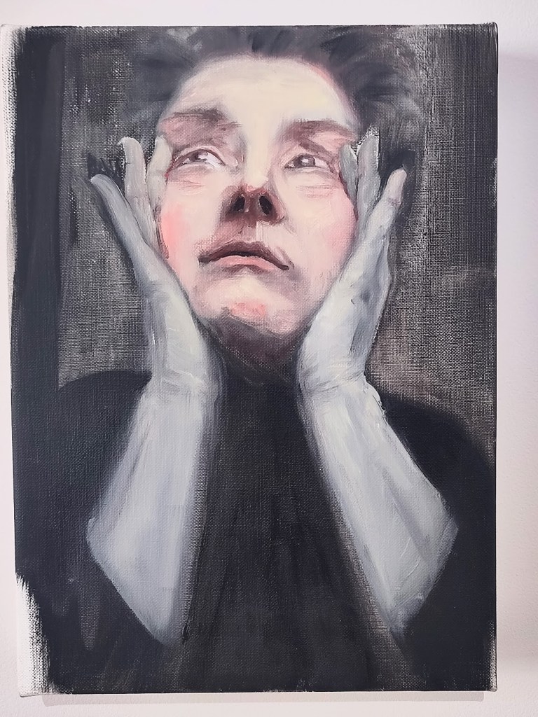 Quatre artistes peintres sont exposés à l’étages, dont l’une m’a plu particulièrement (et c’est la plus classique!): Brigitte Aubignac et ses portraits de femmes borderlines. Des quatre artistes, sont exposées des toiles sur le thème de la solitude.