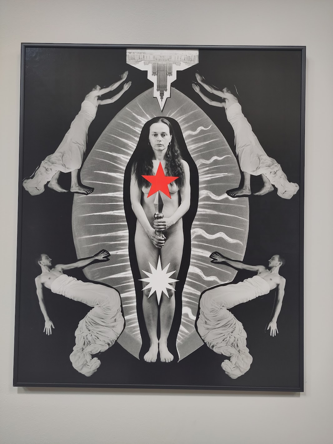 Zofia Kulik a développé une technique de photographie et de découpage-collage qui fait de ses oeuvres des sortes de mandalas assez fascinants. Elle photographie les motifs en studio, les découpe et compose son tableau. De loin, c’est très « soviétique ». Si l’on s’approche, on y découvre des allégories et des symboles pointant le patriarcat, le totalitarisme, la religion, le statut des femme et toutes ces relations de domination et de soumission…