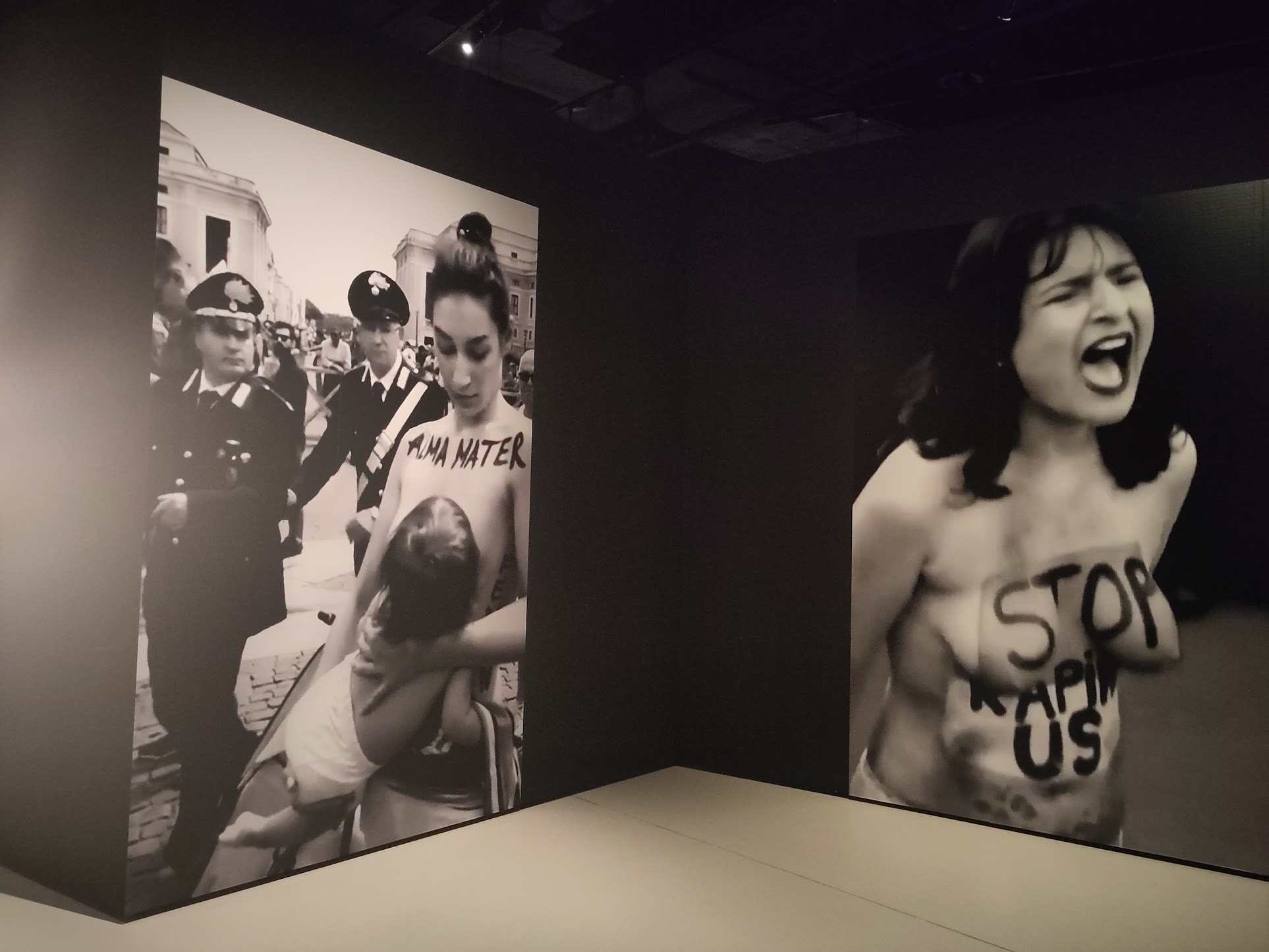 La scénographie sombre et les murs noirs, les cabines de projection favorisant une vision plus confidentielle, les témoignages enregistrés, les dizaines de livrets d’archives alignées contre les murs, cette exposition impressionne durablement sur un sujet qui ne nous parait pas vraiment proche, mais qui reste une image politique de l’asservissement insidieux dont les jeunes femmes ont fait l’objet. Les diktats de la société envers le genre féminin perdurent, en Europe aussi. Les photos suggèrent par allusions, associations ou métaphore. Ceci dit, prenez votre temps, car il y a beaucoup à lire. Voici donc un nouveau sujet de réflexion en lien avec tous les efforts produits dans les institutions d’art pour visibiliser les avancées et l’histoire du féminisme.