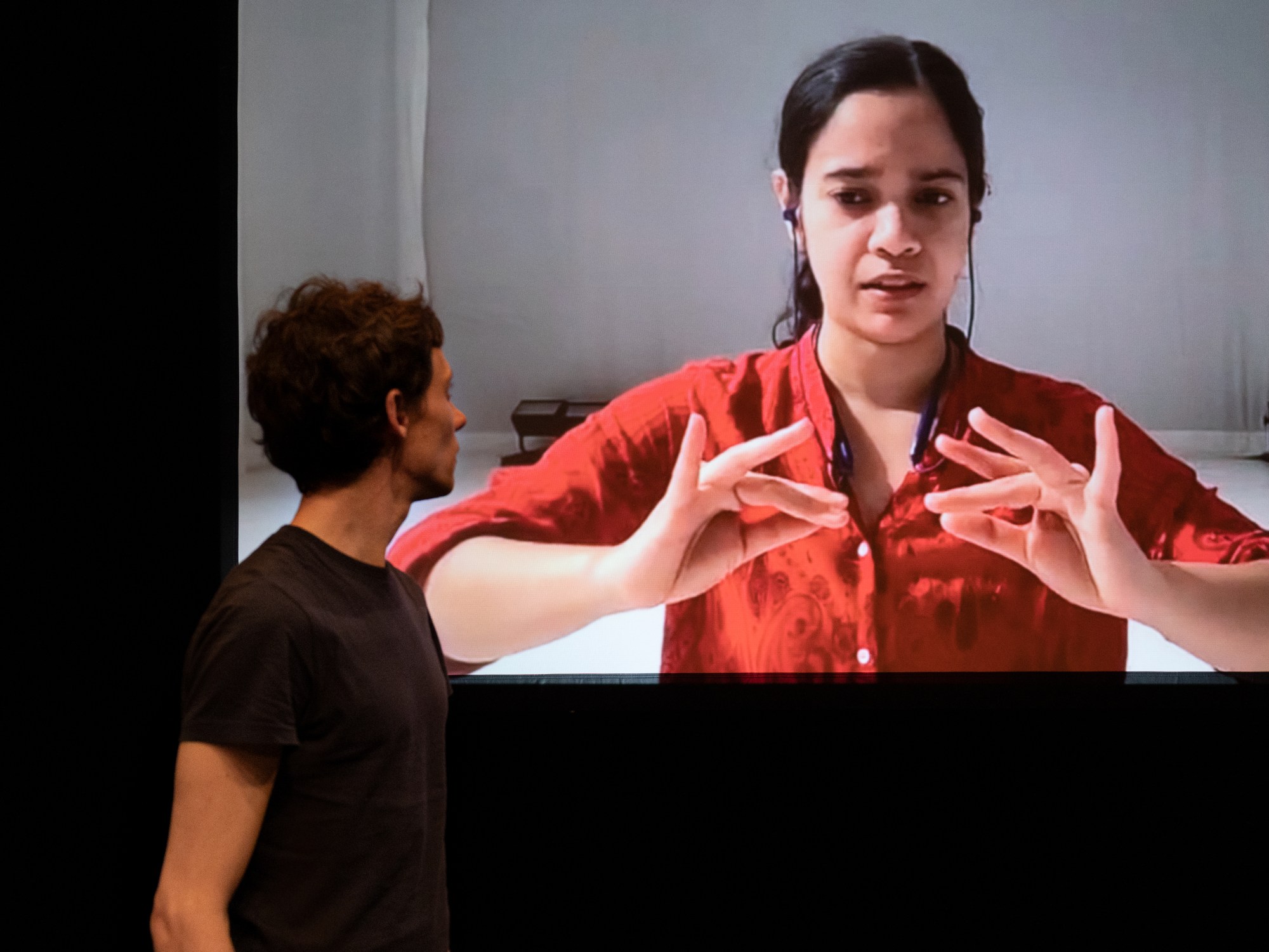 La première, danseuse indienne de bharata natyam, pratique cette danse ancestrale depuis son enfance. Le second est artiste et travaille le sujet des effets de la technologie virtuelle sur les relations humaines. (précédents ici et Là)